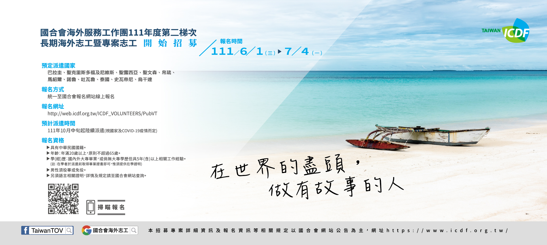 (五)報名方式:網路報名,報名網址:http://web.icdf.org.tw/ICDF_VOLUNTEERS/PubVT