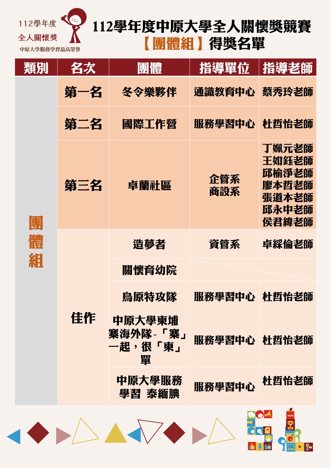 校外服務學習競賽成果